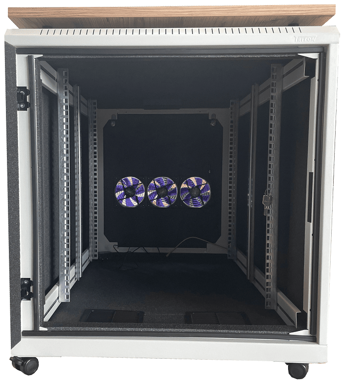 - Rückwand mir 3 ausblasenden Silent-Lüftern mit ca. 300m³/h freiblasend