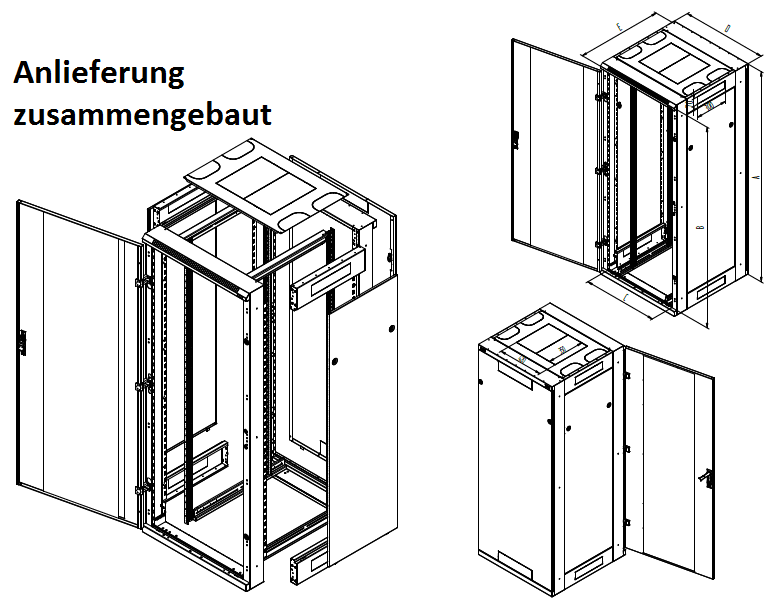 - Komplettlieferung mit allen notwendigen Komponenten eines 19“ Schrankes